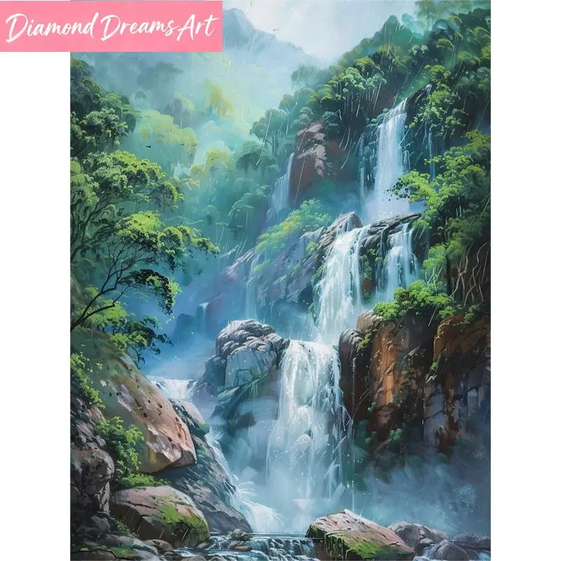 Pintura de diamante Jardim Japonês com Monte Fuji - Pintura em diamante com kit completo, quadros decoração parede sala, diamond painting novidades 2025
