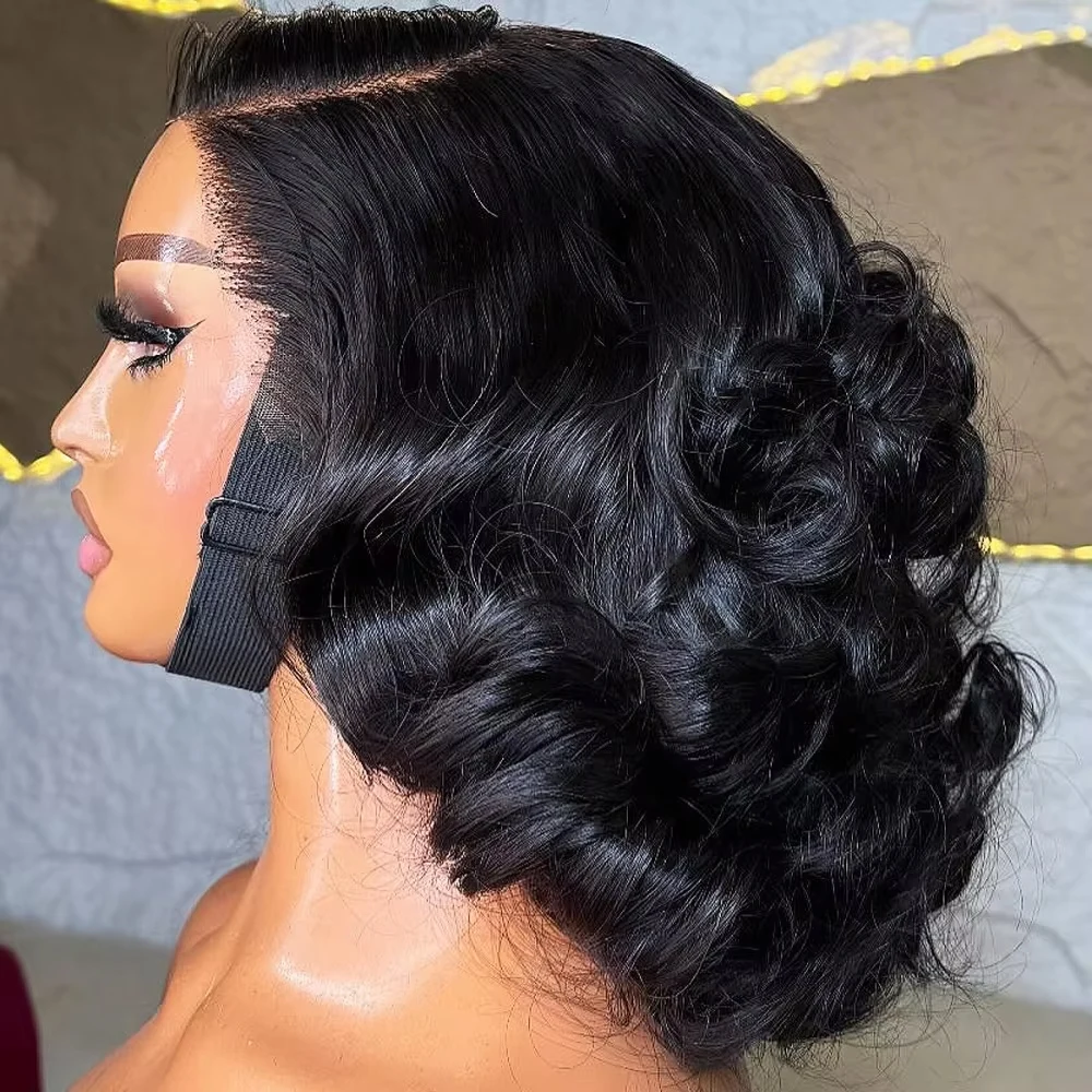 Brasileiro bob onda do corpo perucas 13x4 frente do laço transparente cabelo humano onda solta peruca curta 200% densidade laço frontal remy perucas