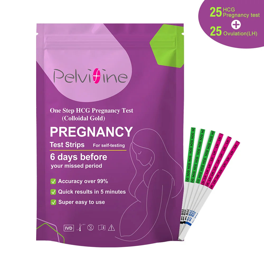 Pelvifine Pacote combinado de tiras de teste de gravidez hCG de 25 pacotes - testes domésticos confiáveis para mães esperantes com copos
