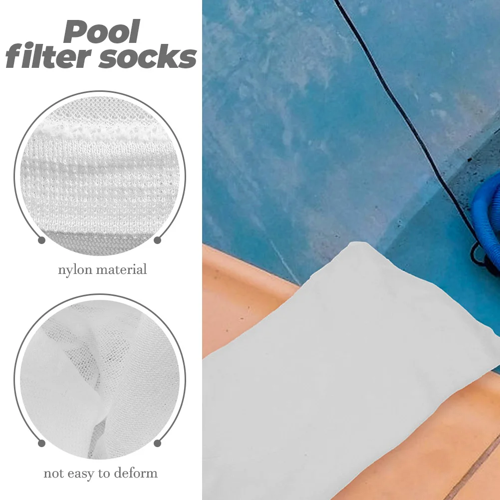 30 pçs saco de limpeza de piscina super elástico filtro de náilon meias para piscinas folhas remoção de detritos skimmer cesta acessórios