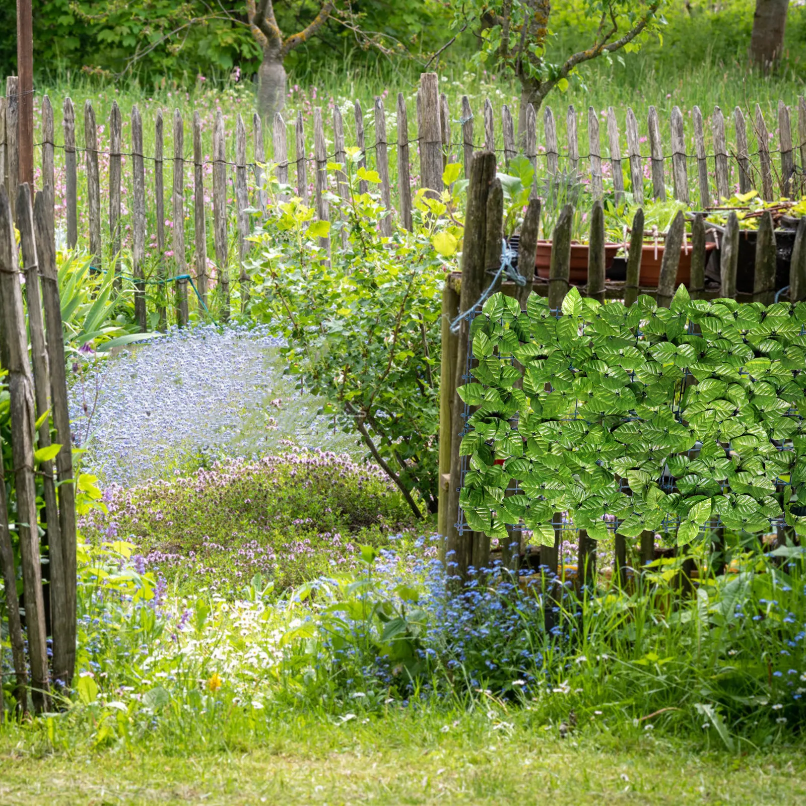 Painel de Parede de Plantas Verdes Artificiais Premium para Jardim, Varanda, Tela de Privacidade, Cerca Decorativa de Folhas com Simulação Natural para Exteriores