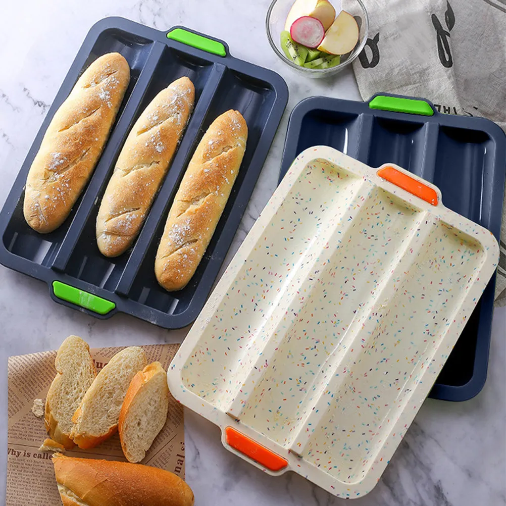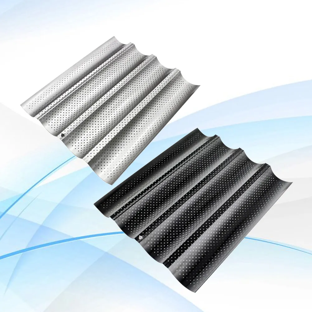 Forma de Pão Francês Perfurada com 4 Cavidades, Antiaderente, em Aço Carbono Resistente, para Forno e Torradeira