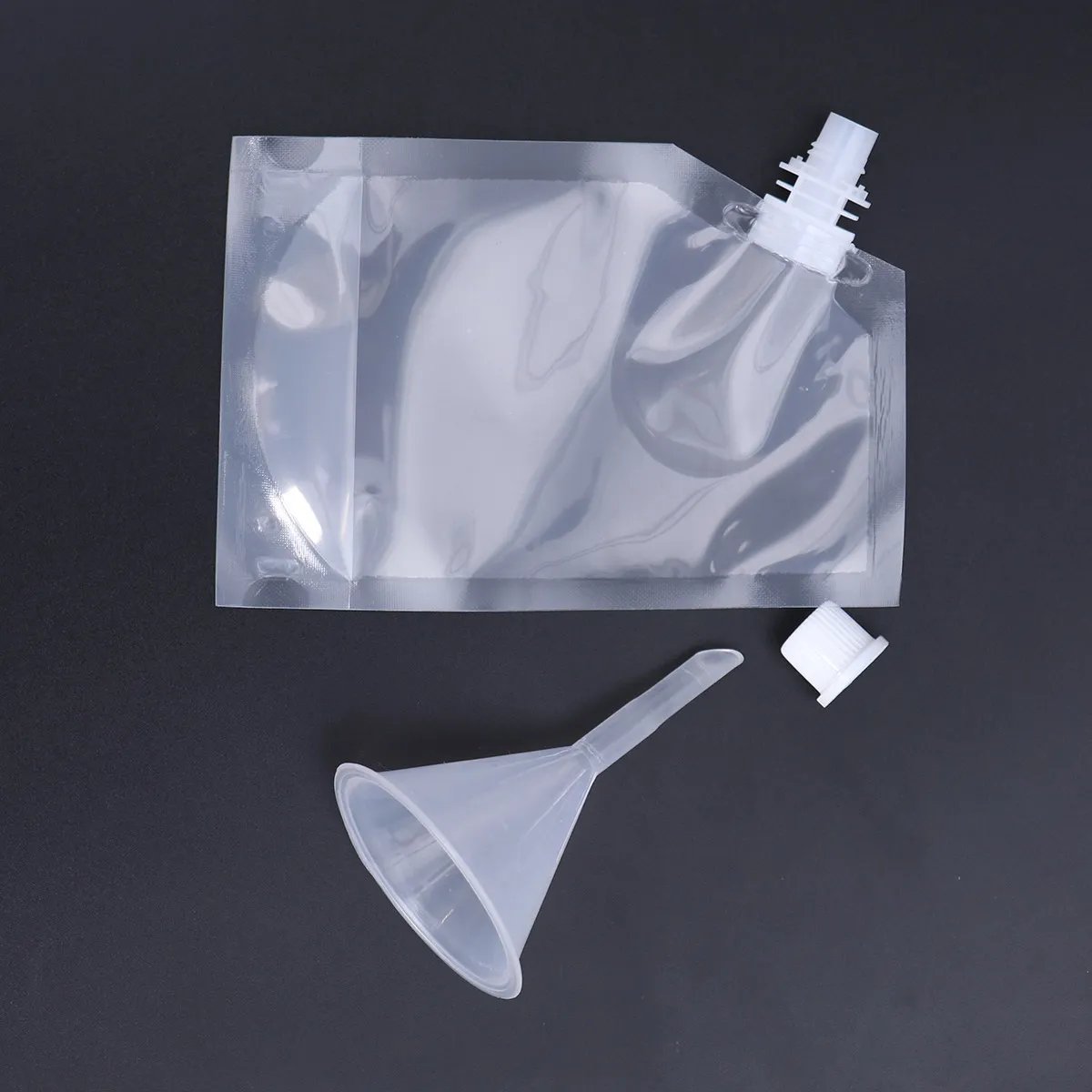Conjunto de 10 Frascos Transparentes para Bebidas com Funil, Bolsa Reutilizável para Líquidos, Ideal para Esportes ao Ar Livre, Porta-Bebidas à Prova de Vazamentos