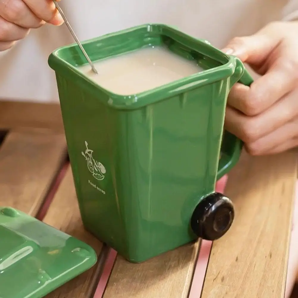 Caneca de Cerâmica Criativa em Formato de Lixeira, Estética Moderna, Presente Divertido de Aniversário, Copo de Água para Estudantes de Dormitório, Utensílio para Beber
