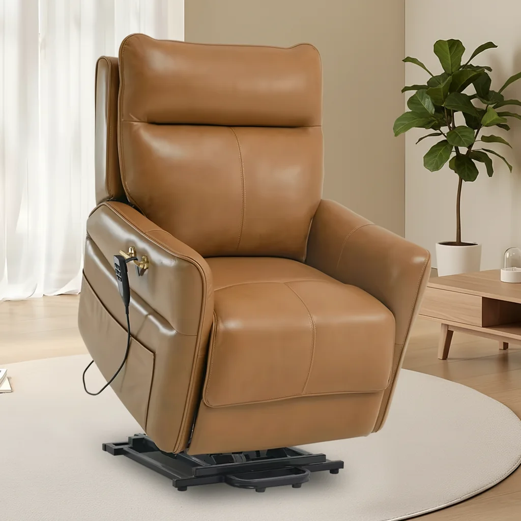 Cadeira reclinável com elevador elétrico de sofá de couro confortável para idosos para ajudar a ficar