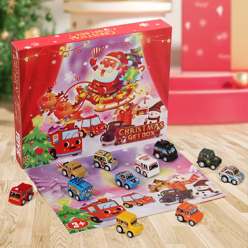Calendário do advento de natal perfurador e ganhar caixa cega mini modelo de carro 24 peças veículo caminhões brinquedos para meninos crianças presentes de natal