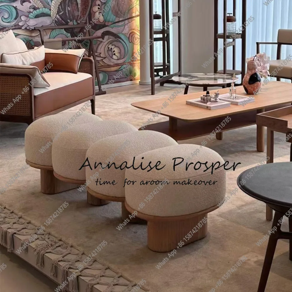 Moderno banco de pé de madeira creme interior bonito criativo estético designer maquiagem passo fezes chão tabouret móveis pós-modernos