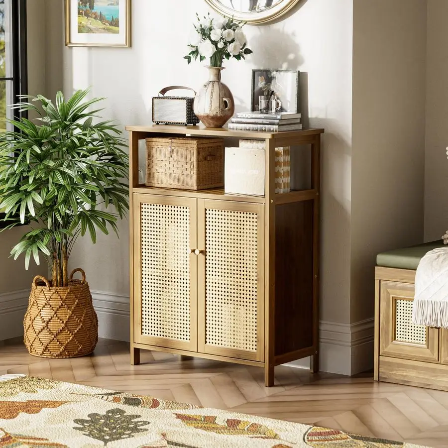 Armário de Rattan para Banheiro, Armário de Banheiro de Bambu, Armário de Armazenamento Independente, Cabine Multiuso para Sala de Estar que Economiza Espaço