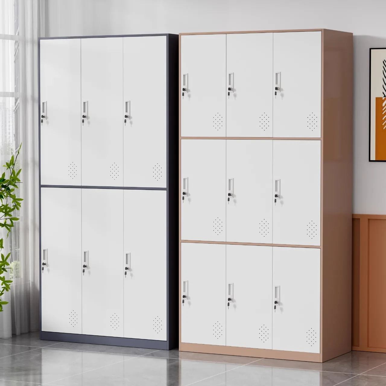 Armário de Aço Moderno com 9 Portas, Armário de Ferro Antiferrugem para Escritório, Escola, Quarto, Hotel, Sala de Estar, Uso Hospitalar e Ambientes Úmidos, com Pintura Eletrostática