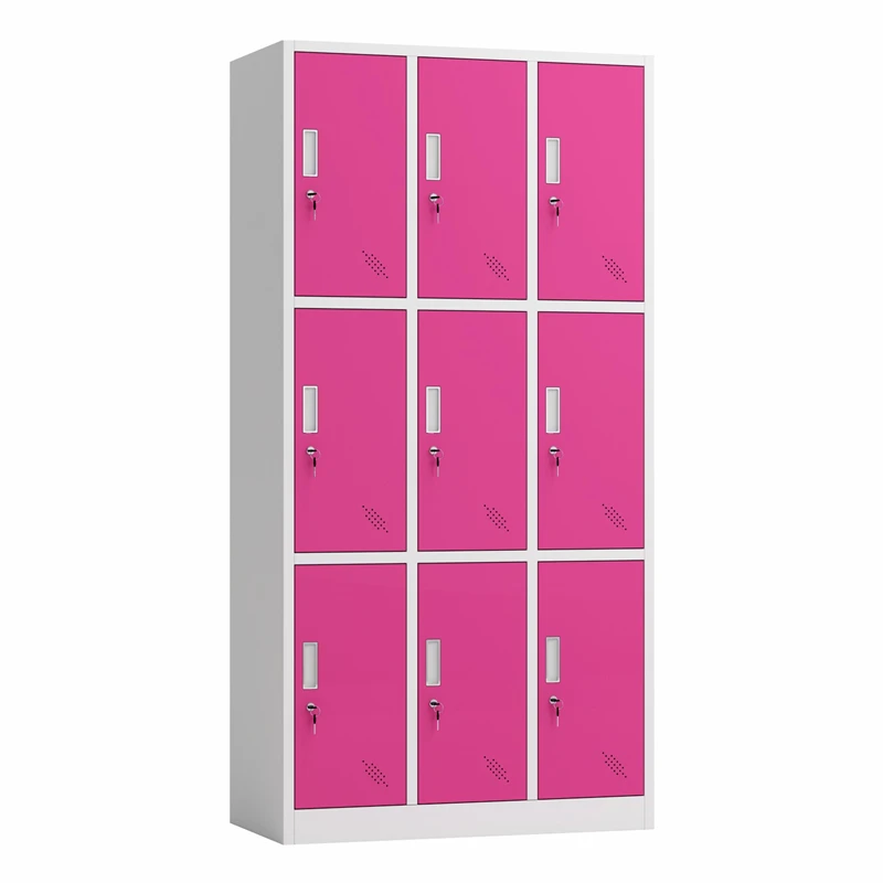 Armário de escritório moderno de aço com 9 portas, acabamento em pintura a pó anti-ferrugem, para uso em academia, quarto, hotel, escola, sala de estar, hospital.