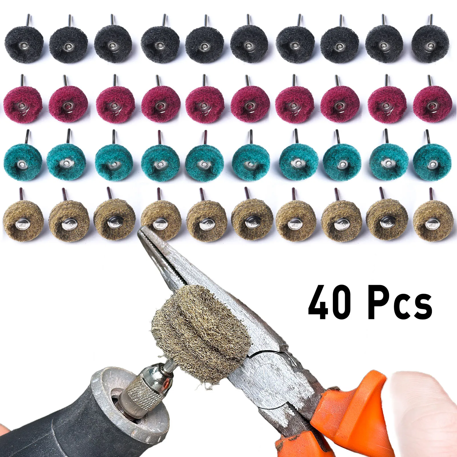 Acessórios para ferramentas rotativas Dremel, mini brocas de 40 peças, escovas abrasivas, conjunto de rodas de polimento de nylon para remoção de ferrugem