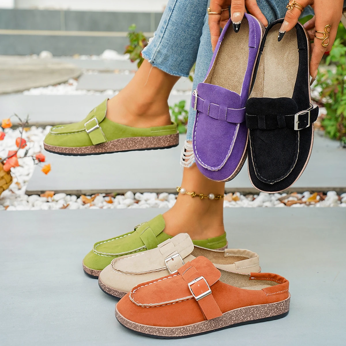 Baotou metade chinelos primavera e verão 2cm mulher estilingue impressão de lona sapatos casuais mules preguiçoso deslizamento-em sandálias zapatos de mujer
