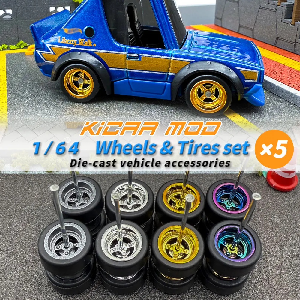 Rodas Destacáveis de Borracha com Pneus Lisos e Rodas ABS para Modelos de Carros em Escala 1/64 - Peças de Refit para Carros Diecast da Linha Principal Q - Diâmetro 9.6mm (5 Conjuntos)