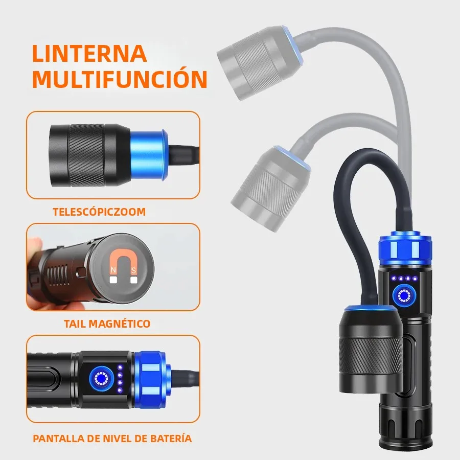Lanterna LED XHP50 de alta potência: tocha com zoom de 4 núcleos com carregamento tipo C, lanterna manual de emergência para acampamento ao ar livre 18650