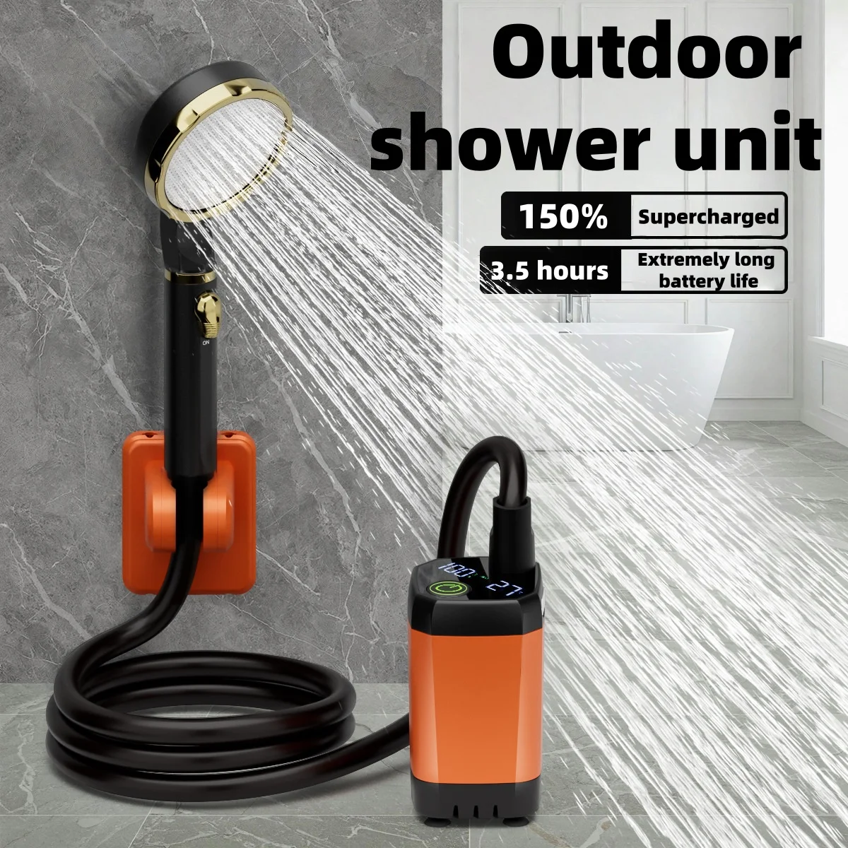 Unidade de chuveiro elétrica portátil para exterior, kit de chuveiro para acampamento, bateria de longa duração, adequado para construção, camping e uso doméstico