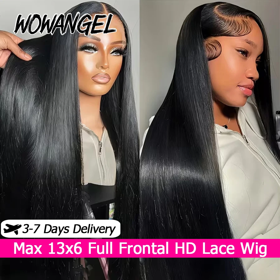 Wowangel perucas sem cola em linha reta 13x6 hd perucas dianteiras do laço pré arrancadas 100% perucas de cabelo humano cabelo brasileiro para mulher pré branqueado