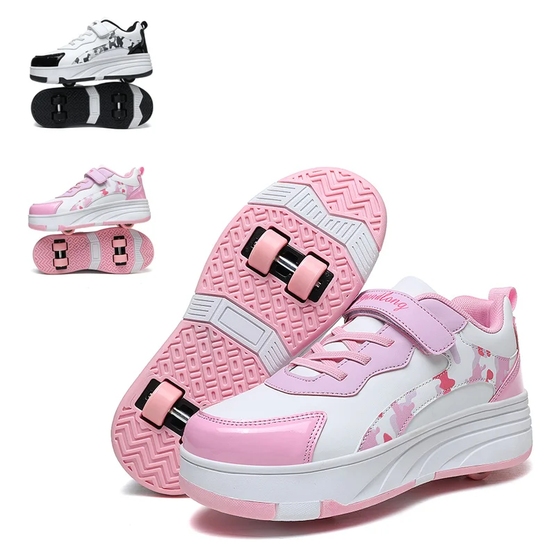 Patins de rodas para estudantes, meninos e meninas, com duas rodas destacáveis, tamanho 30-41, tênis esportivos multifuncionais para caminhada infantil.
