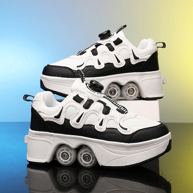 Novos Patins de Quatro Rodas de Dupla Fileira, Sapatos de Patinação de Uso Duplo, Tênis Esportivos para Homens e Mulheres, para Caminhada com Cães, Treinamento e Corrida