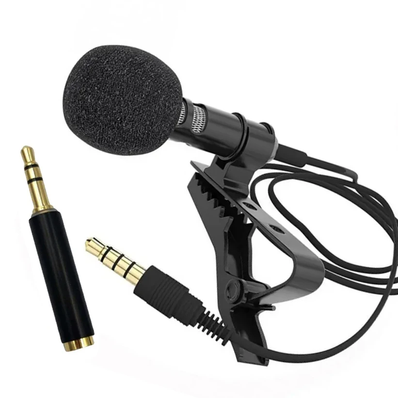 Microfone de lapela de lapela com fio, 2 peças, 1.5m, microfone condensador omnidirecional para smartphones ios/android, gravação de podcast, entrevista