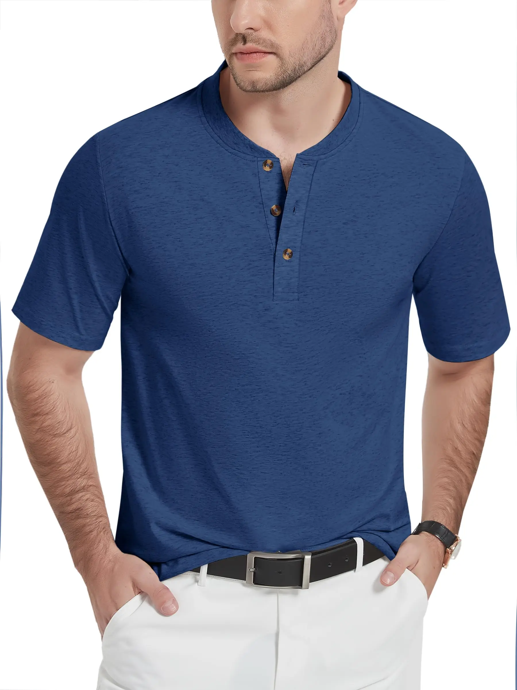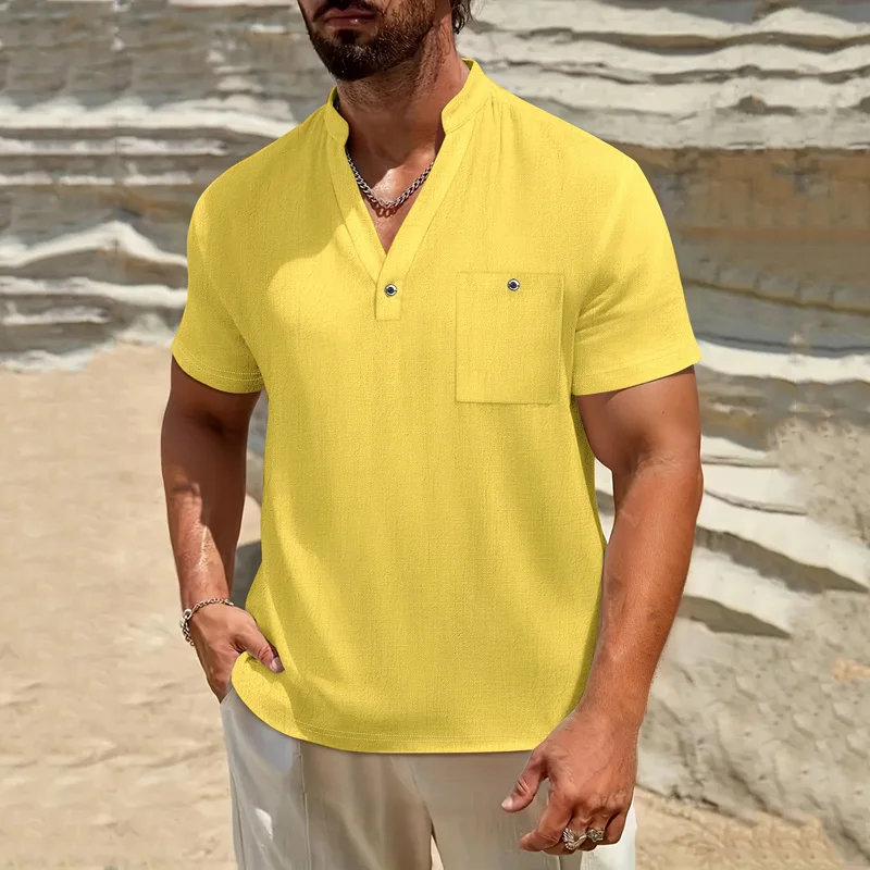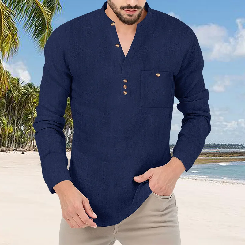 Camiseta Masculina de Manga Longa com Gola Henley, Estilo Japonês Retrô Amekaji, Tecido Pesado 320gsm, 100% Algodão Slub, Caimento Solto e Cor Sólida