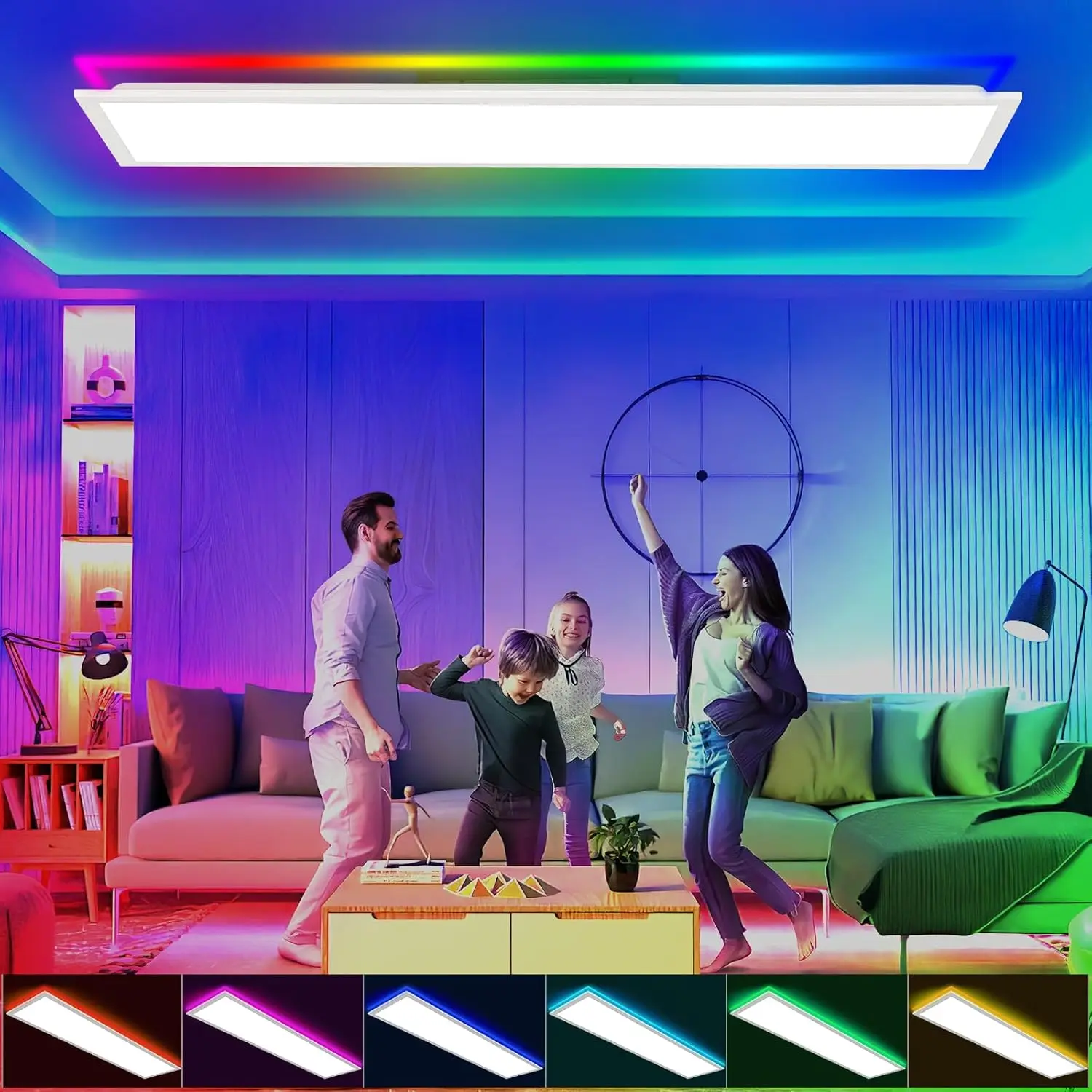 Luminária de Teto LED Painel 100cm RGB Regulável com Controle Remoto, 30W 3300LM 3000-6500K, Lâmpada de Teto Plana para Sala de Estar, Quarto e Escritório