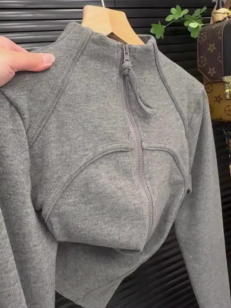 Jaqueta Esportiva Curta e Sexy para Mulheres, Slim-Fit com Zíper, Manga Longa para Corrida, Outono 2026
