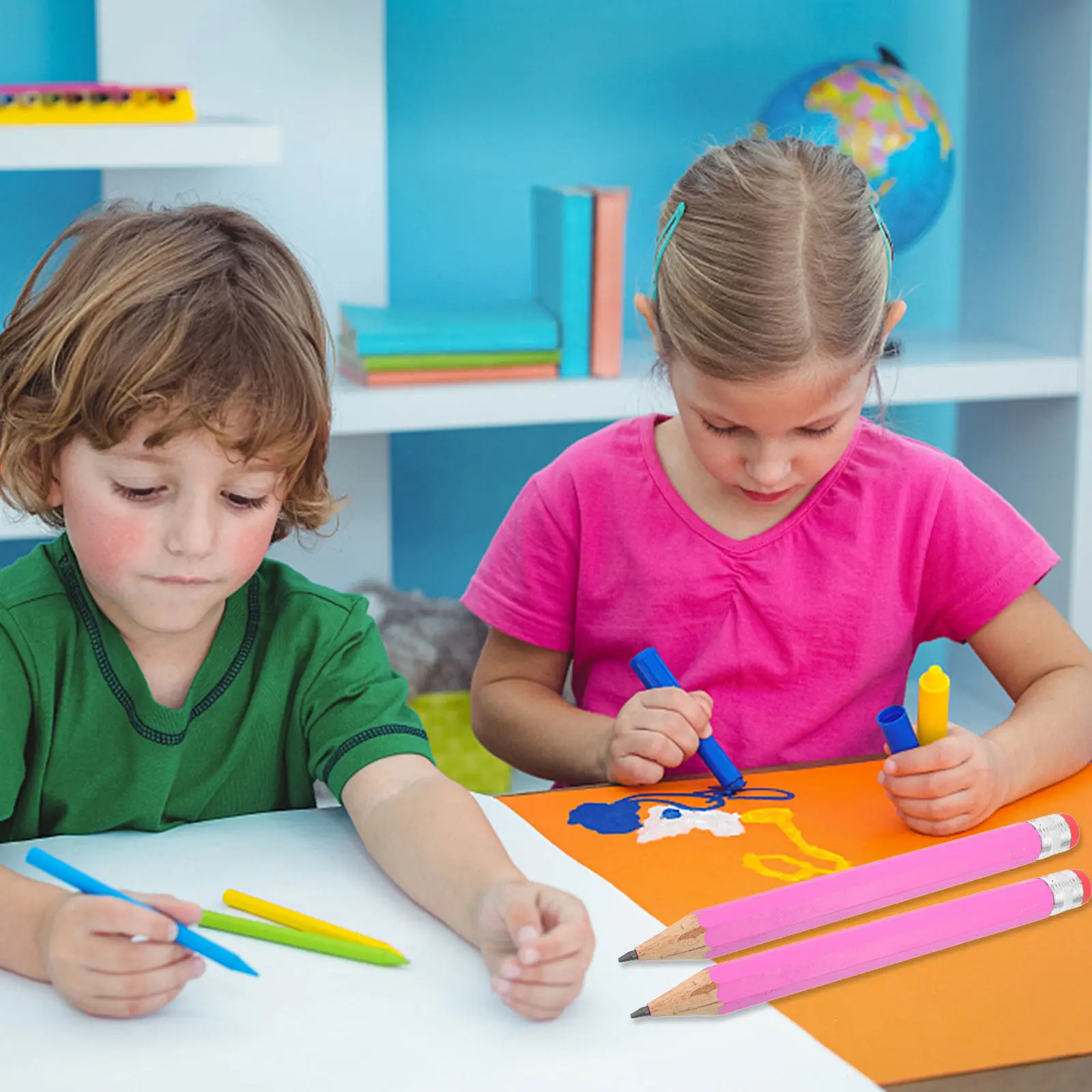 2 Peças Lápis de Madeira Grande 35cm para Desenho, Escrita, Arte, Pintura e Marcação, Acessórios de Papelaria, Cor Rosa Aleatória, Estojo Protetor Transparente