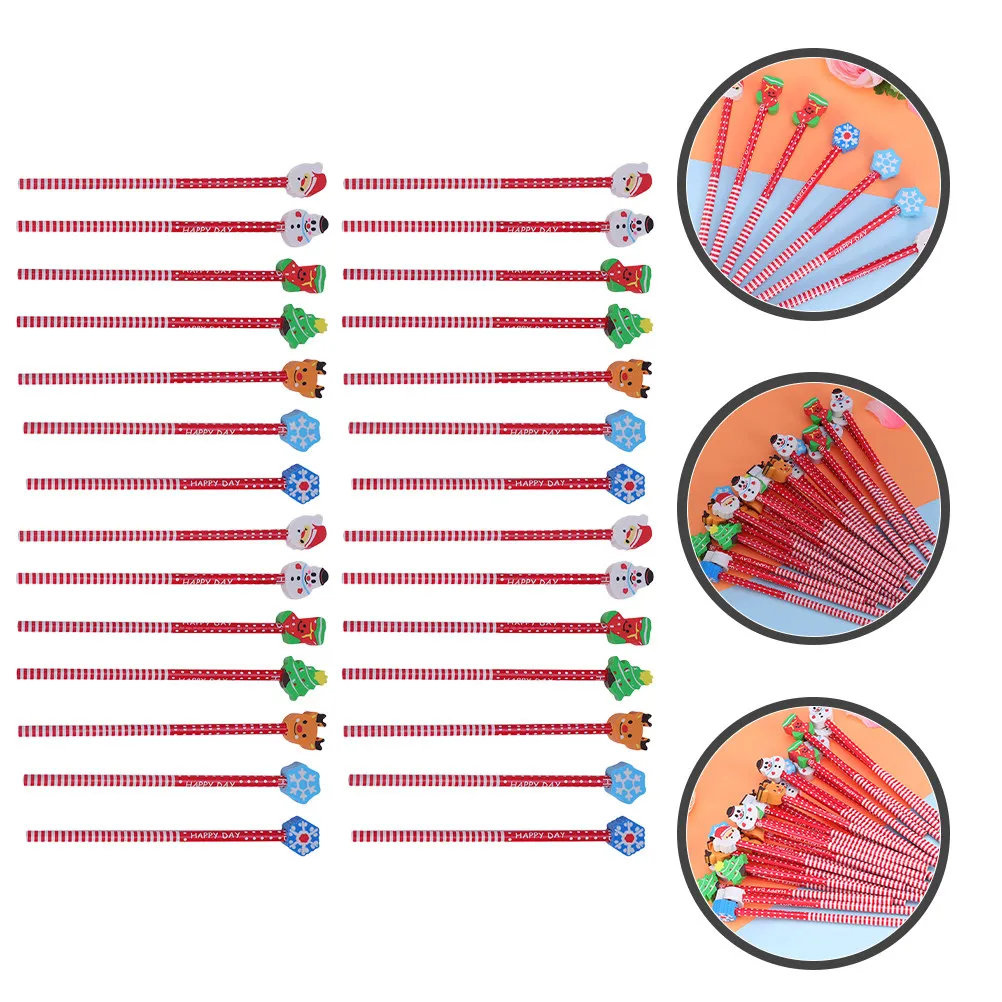 40 Lápis de Natal para Crianças, Lápis Escolares de Madeira com Borrachas, Lembrancinhas de Festa de Natal, Material de Escritório Divertido para Feriados