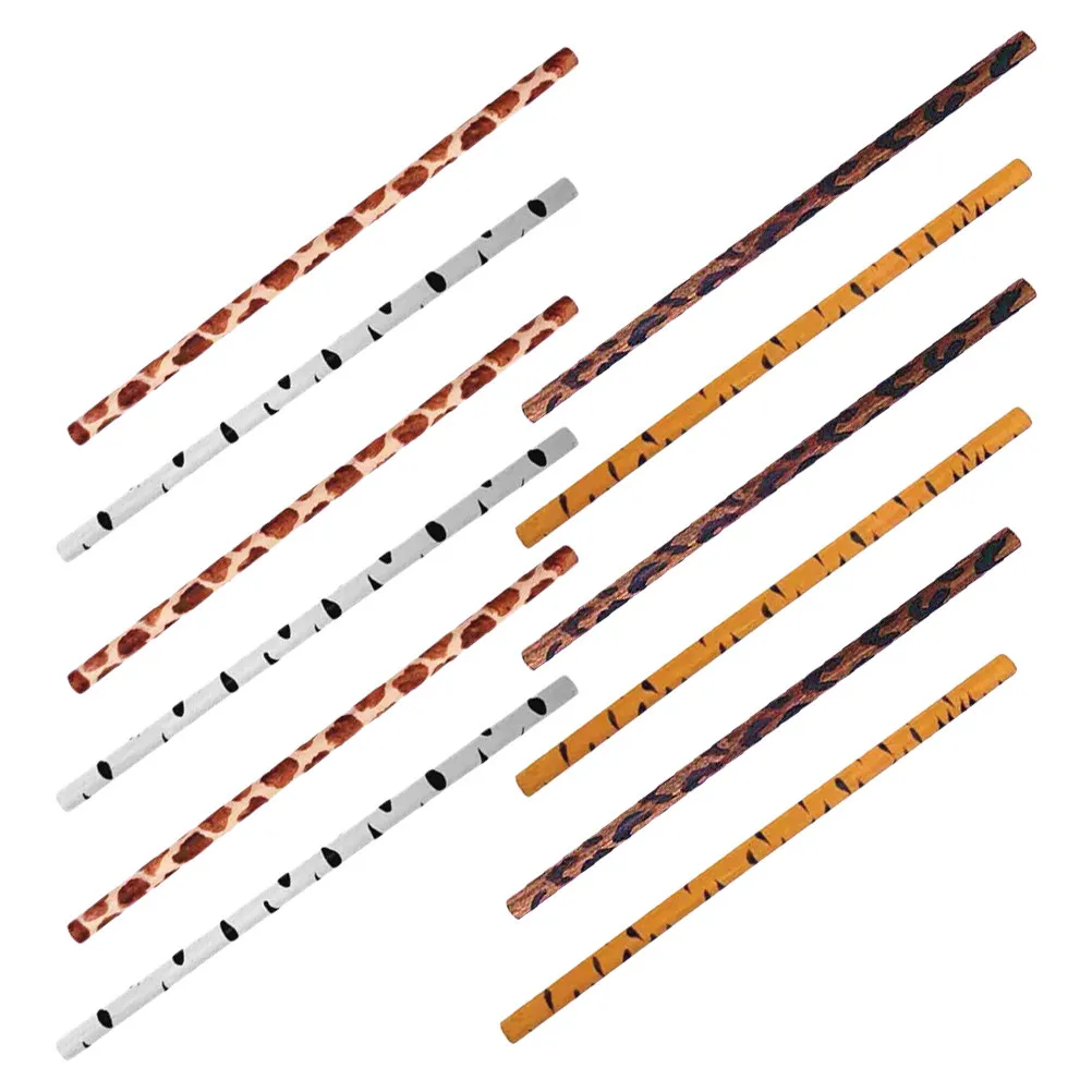 12 Lápis de Madeira com Estampa de Animais, Tema Selva, HB, Formato Redondo, Padrões Fofos de Tigre, Leopardo, Zebra e Girafa, Lembrancinhas para Festas Escolares