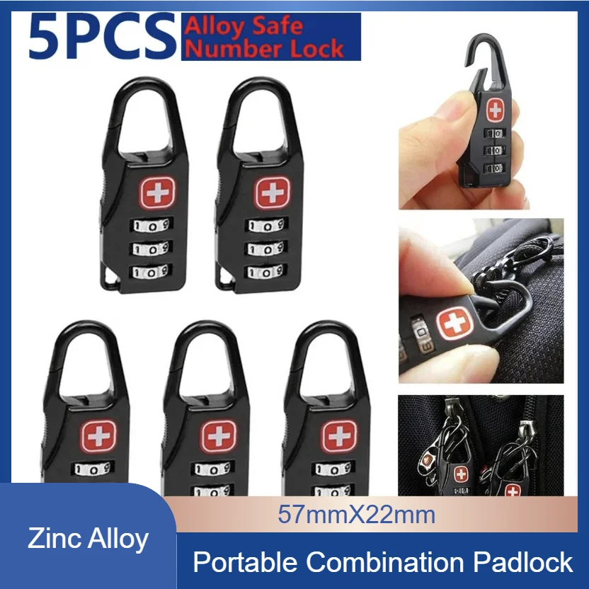 1-5pcs cadeado de combinação portátil – bloqueio de código de 3 dígitos de liga para bagagem de viagem, mochila, zíper, bolsa, anti-roubo ao ar livre