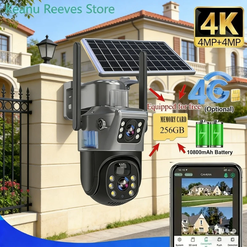 Câmera de segurança ipc360 home app 16mp 8k, 4 lentes, zoom 10x, 3 telas, wi-fi, ptz, áudio bidirecional, rastreamento automático, visão noturna colorida