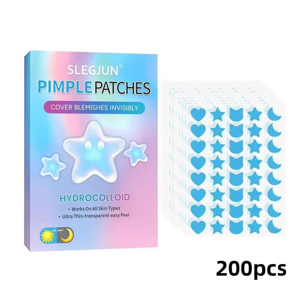 200 pçs pe acne remendos espinha remendo invisível cuidados com o rosto bonito estrela & coração em forma misturado para espinhas manchas pele-amigável