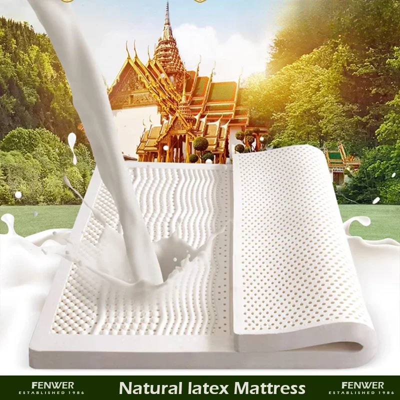 Fenwer colchão de látex 100% natural, colchão puro de borracha natural 2.5/5/7.5/10cm, tapete de almofada para casa e quarto