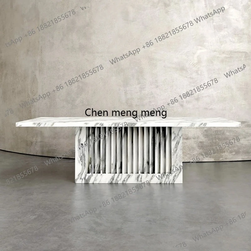 Mesa de jantar minimalista de luxo italiana, grande, retangular, de mármore branco, para villa ou apartamento grande.