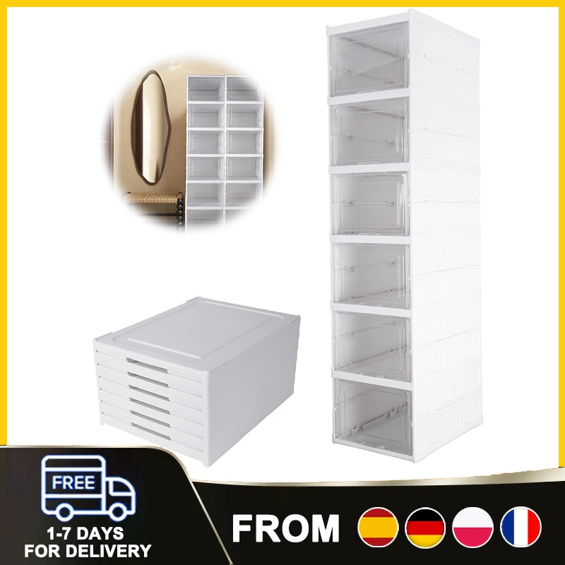 Max Home - 4 caixas de sapatos transparentes, empilháveis e anti-tombamento para casa, até T. 46, 25x35x18,5 cm