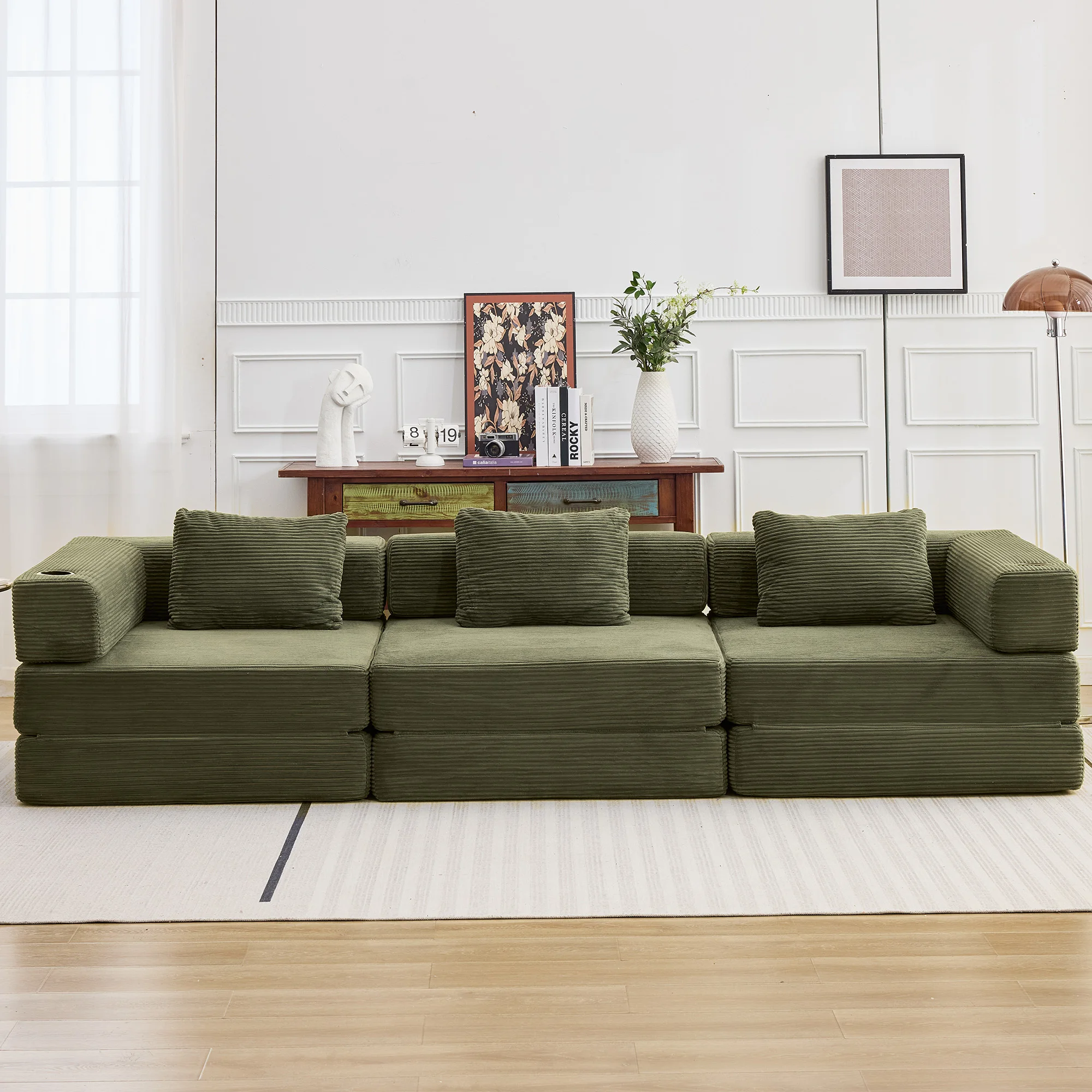 Sofá-Cama de 3 Lugares Sem Montagem, Sofá Dobrável de Chão Conversível em Cama Espaçosa, Sofá-Cama de Veludo Cotelê para Várias Pessoas para Sala de Estar
