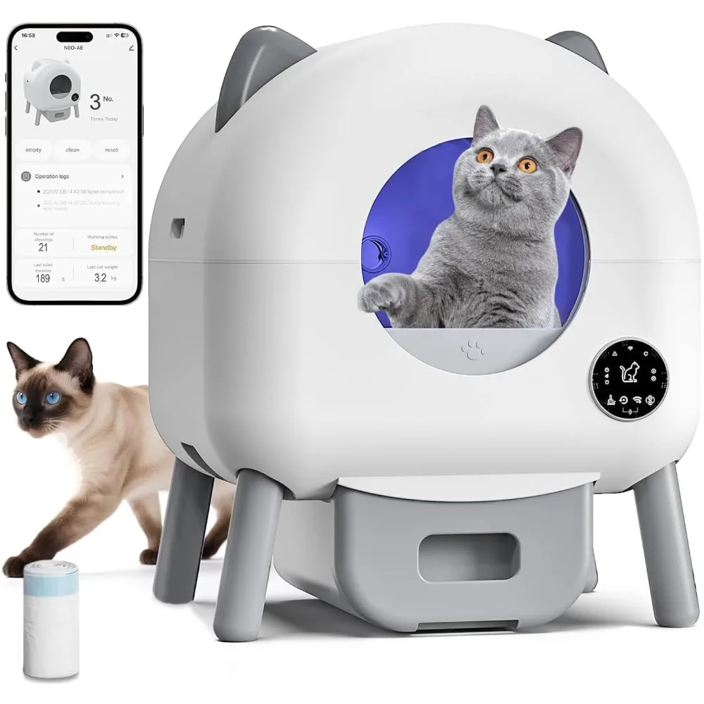 Caixa de areia para gatos autolimpante, caixa de areia automática para gatos, caixa de controle de areia, controle por aplicativo, alerta de segurança, isolamento de odor