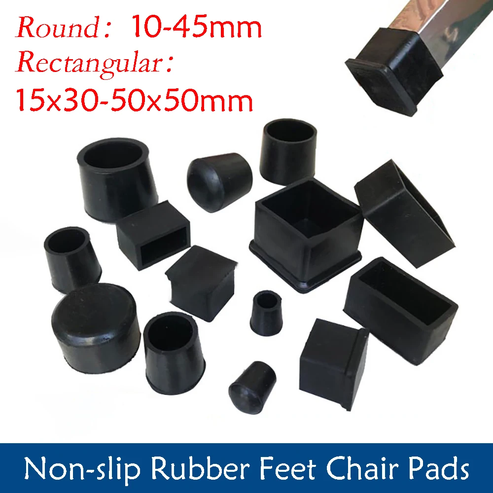 2-100 peças preto antiderrapante pés de borracha almofadas de cadeira redondas/quadradas pernas de móveis pés de mesa anti arranhões tampas de cobertura 10-50mm