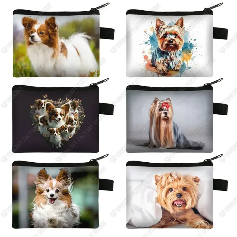 Papillon Dog Coin Purse Com Zíper, ID Carteira, Cartão De Crédito, Chave, Fones De Ouvido Titular, Bolsa Adorável, Kawaii Yorkshire Terrier