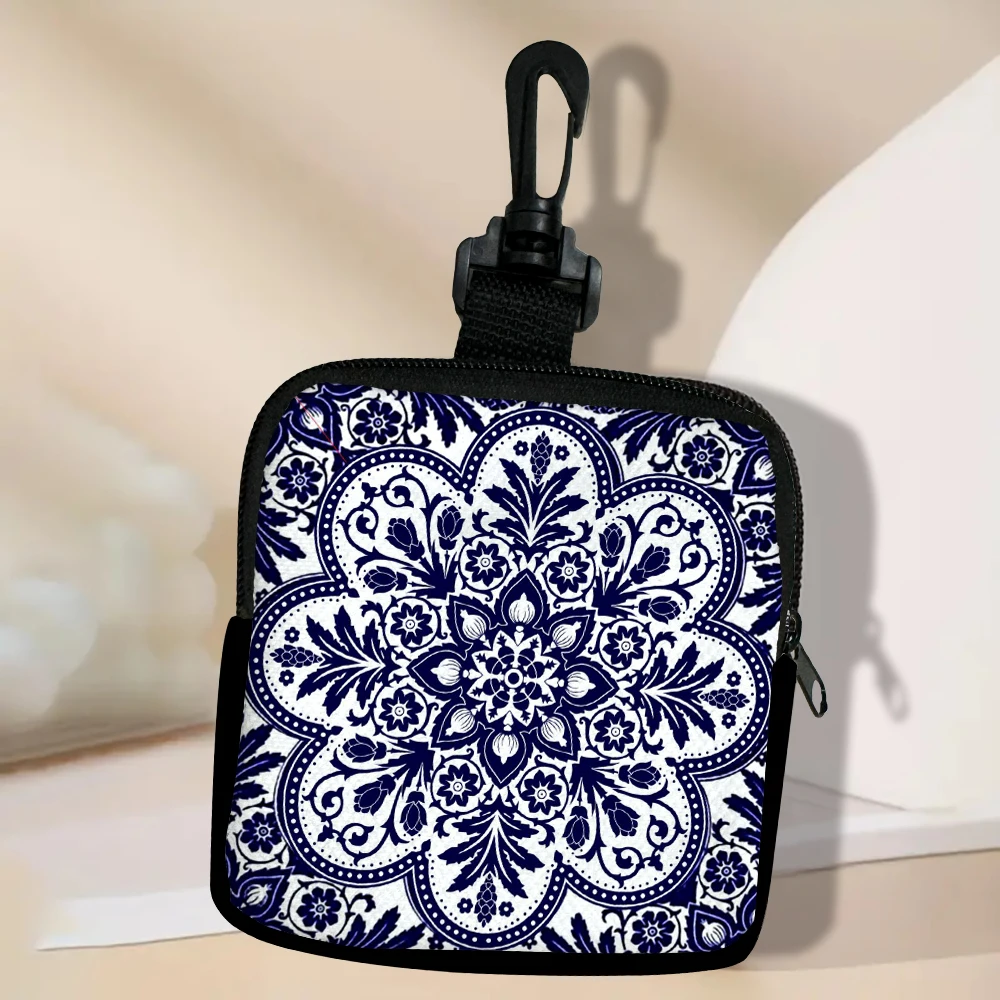 Carteira de moedas de grande capacidade mandala azul e branco à prova d'água animais digitais bolsa de armazenamento de carteira de moedas 618