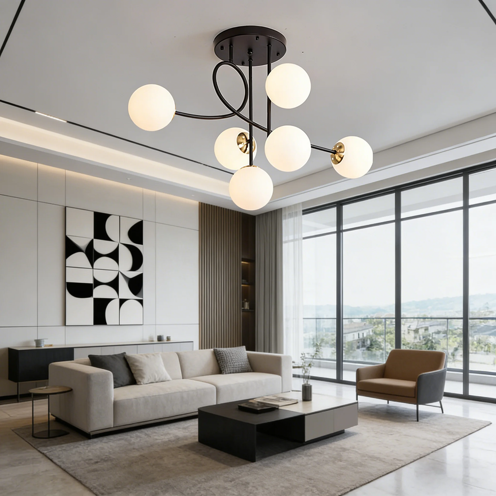 Lustre nórdico moderno com bola de vidro, design criativo, adequado para quarto, sala de estar e sala de jantar, iluminação decorativa