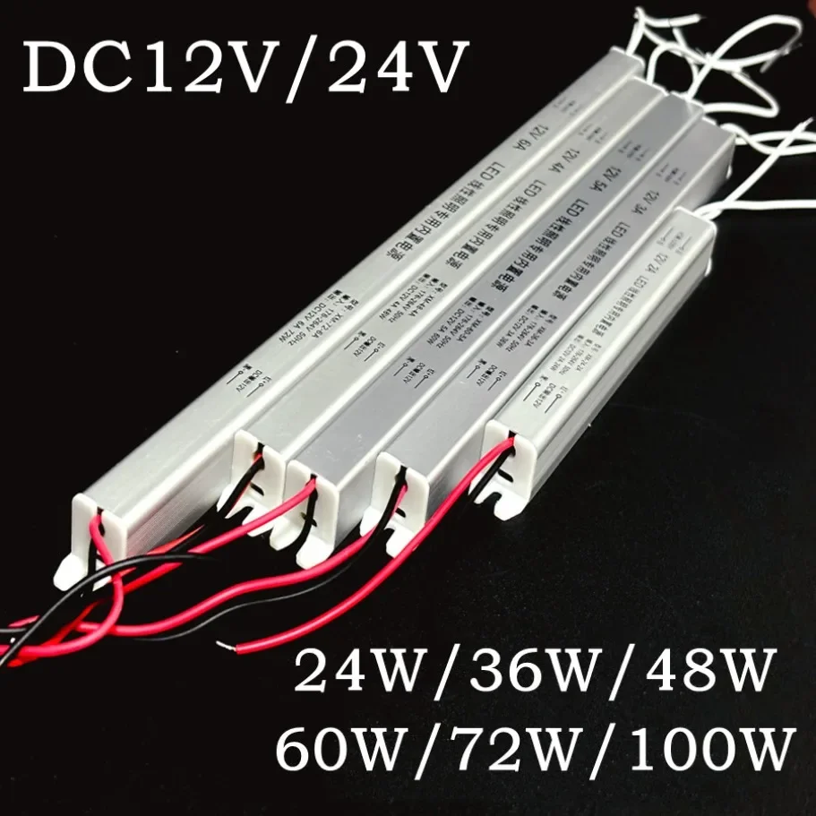 Fonte de alimentação ultrafina para driver de led, dc12v/24v ac 220v para tira de led 24w 36w 48w 60w 72w 100w transformador de iluminação
