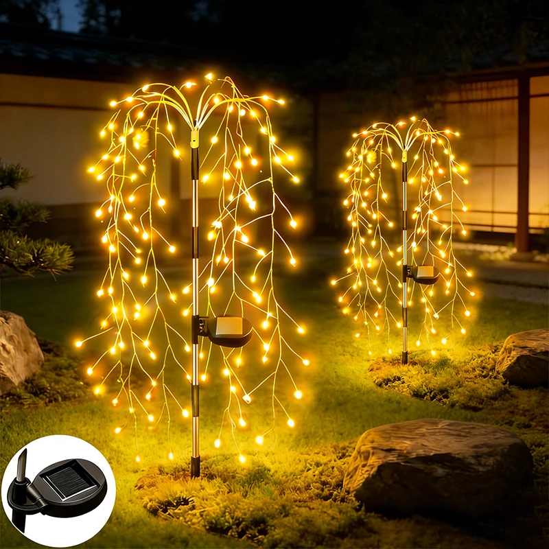 Luzes de Fada LED em Cordão Solar, Luzes de Fogos de Artifício para Exterior, Lâmpada Solar à Prova d'Água para Jardins, Caminhos e Decoração de Festas