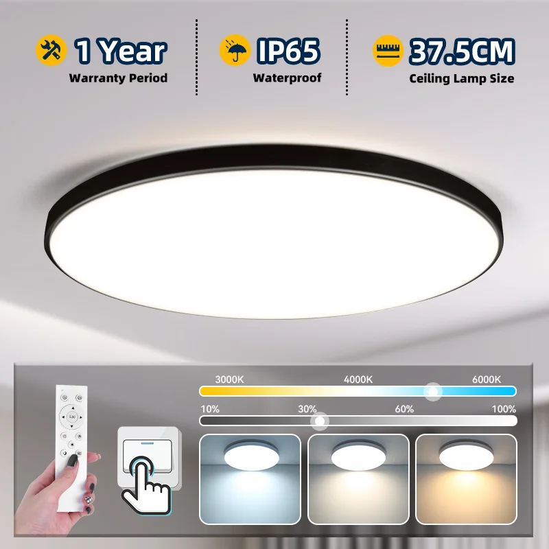 Luz de teto redonda LED para sala de estar interna, lâmpada moderna, quarto e banheiro, 18W, 27W, 36W, 220V-240V, IP55
