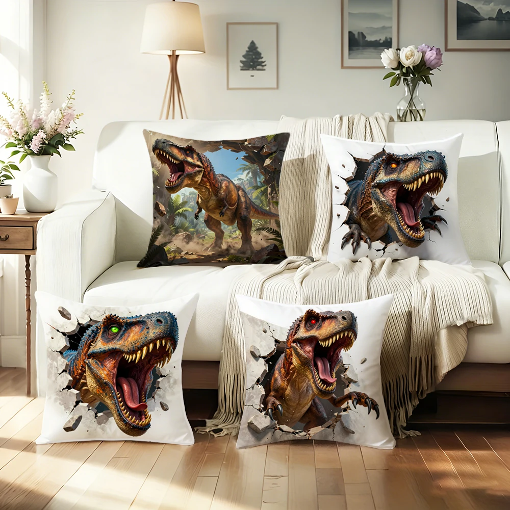 Capa de almofada com estampa de dinossauro, estampa dupla face, pelúcia curta, adequada para salas de estar, quartos, sofás, capa de almofada decorativa.