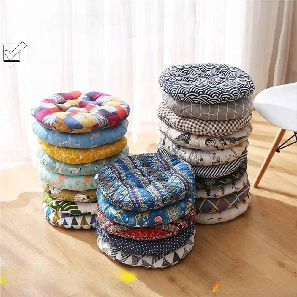 Almofada redonda de linho de 5-8 cm de espessura, almofadas redondas meditação grande travesseiro de chão para assentos de chão yoga sala de estar escritório
