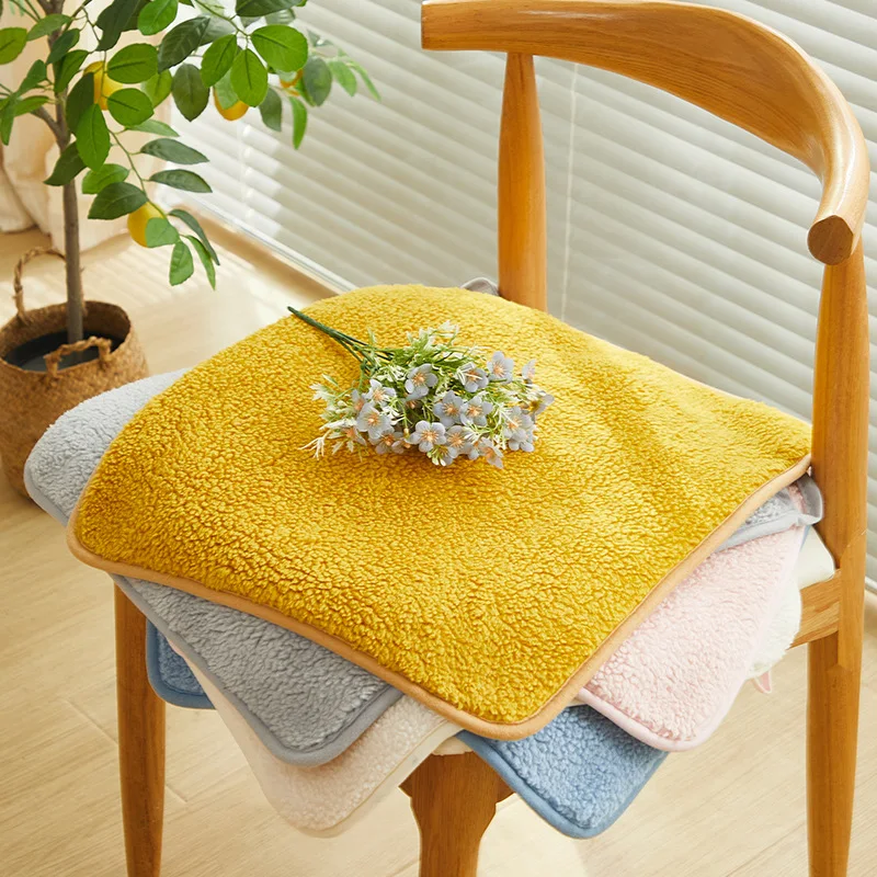 Almofada de assento grossa de pelúcia redonda e quadrada para inverno, sofá para casa, cadeira de escritório, cor sólida, almofada de lã de cordeiro, almofadas de chão macias e grossas