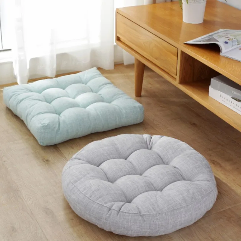 Almofada redonda de linho de 5-8 cm de espessura, almofadas redondas meditação grande travesseiro de chão para assentos de chão yoga sala de estar escritório