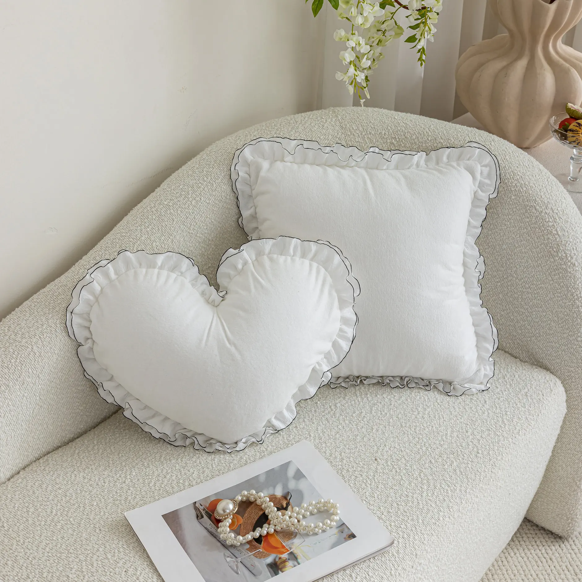 Princesa laço branco volta almofada quadrado/em forma de coração lance travesseiro babados amor coração cintura travesseiro escritório encosto presentes de casamento
