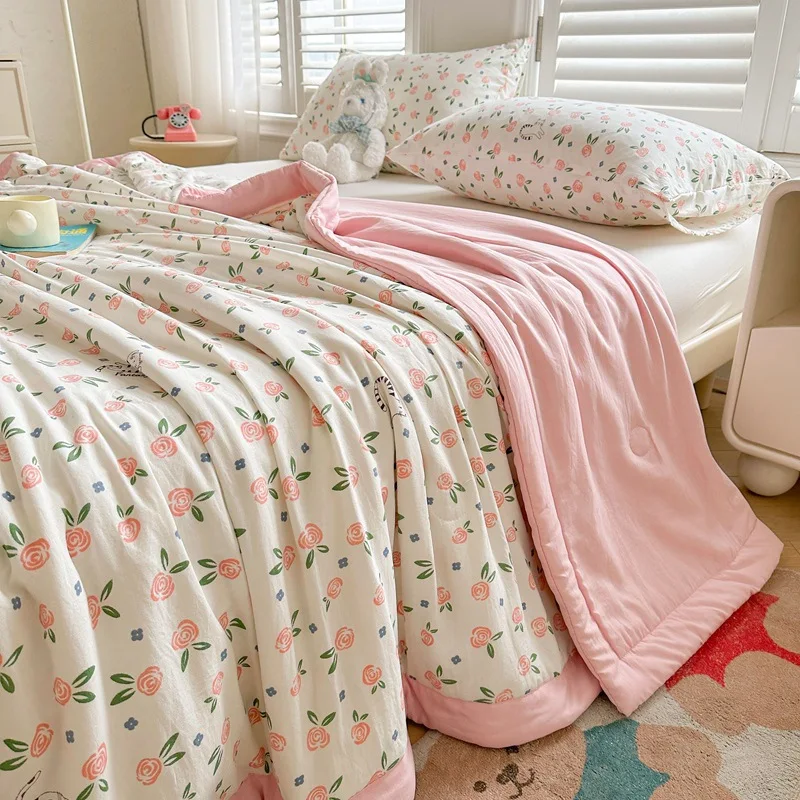 1pc colcha de verão colcha de quatro peças ar condicionado macio cama antiderrapante pele-amigável pequena impressão fresca bolha algodão 이불